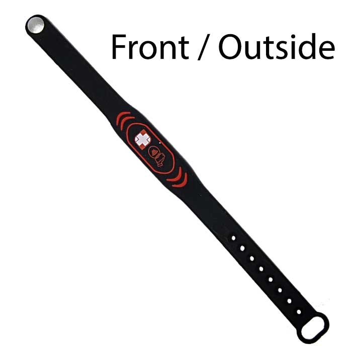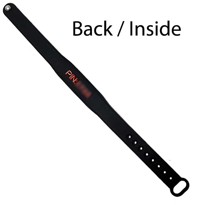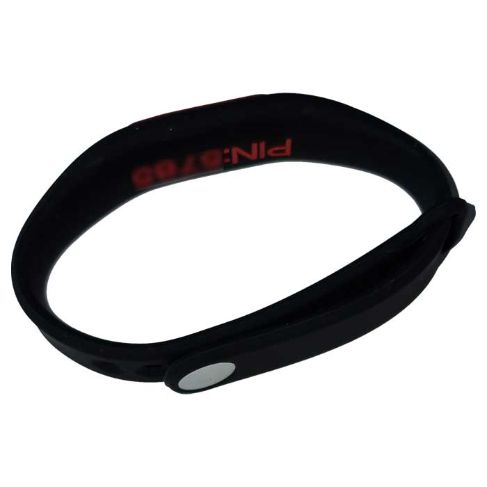 Silicone or 'rubber' wristbands are made of soft and comfortable plastic, which is flexible and water-resistant. These wristbands are suitable for repeated use both inside and outside of the water. The kids wrist band is 213mm in length with an adjustable size from 120mm - 180mm. The wrist band comes with an anti-loss loop to prevent accidental detachment of the strap. Once you tap the wristband, the PIN is securely located on the inside of the strap.